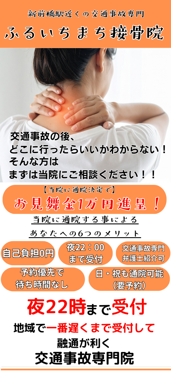 交通事故の施術は22時まで受付!お仕事が終わるのが遅い方も安心して通院できます。