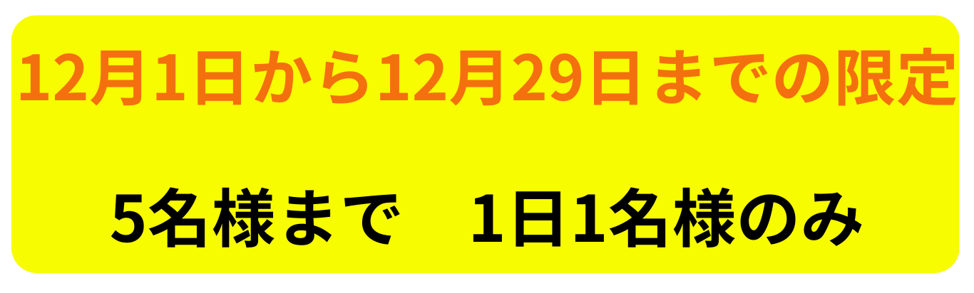 12月末まで5名様限定で82%OFFの1,980円とさせていただきました